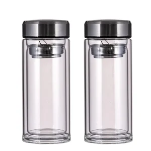 260ml Leak Proof Clear Double Wall Borosilicate Glass Tea Infuser Water Bottle